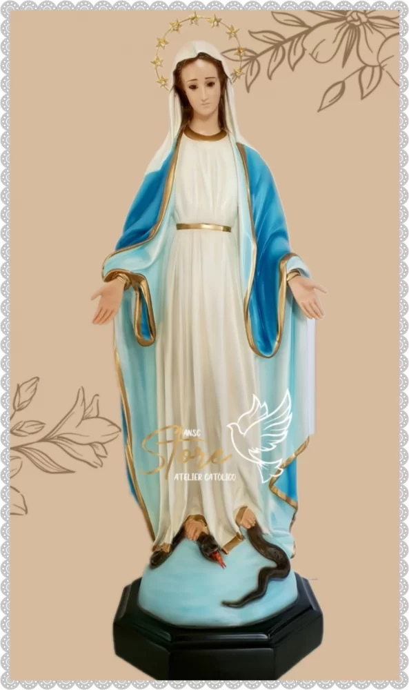 Nossa Senhora das Graças 65 cm Imagem em resina.Olhos de vidro.Aureola banhada a ouro.Altura: 65cm.Base 23x23cm.Prazo pra entrega 30 dias mais envio.