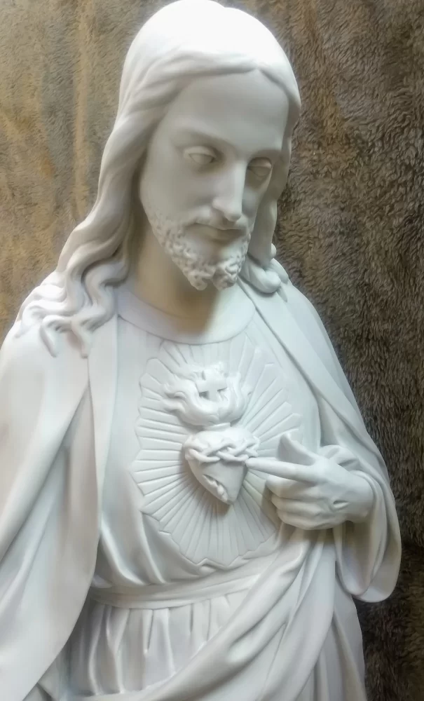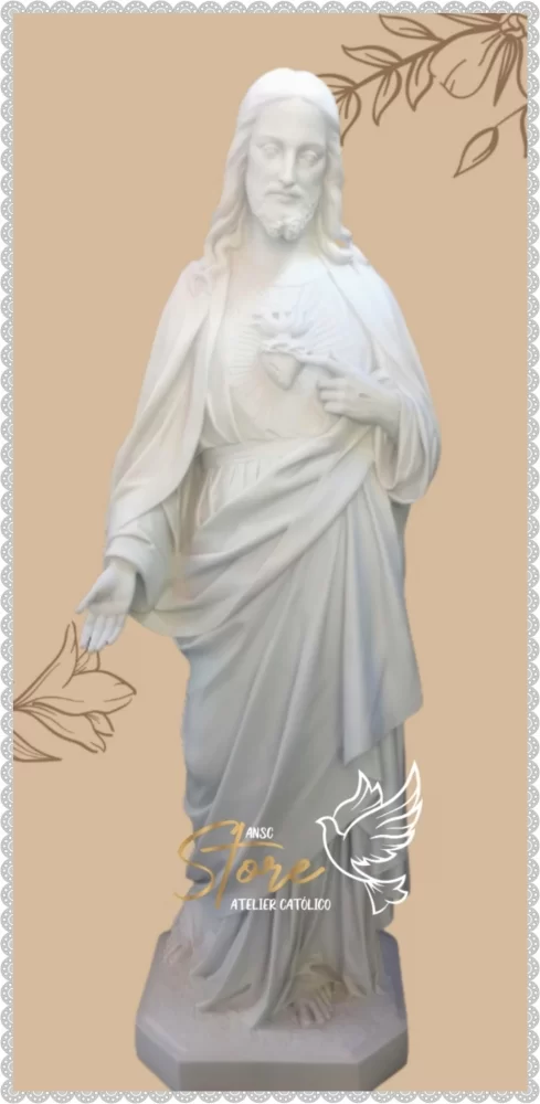 Sagrado Coração de Jesus 113 cm em pó de mármore. Imagem em resina.Ideal para exterior.Prazo pra fabricação 30 dias úteis + envio.